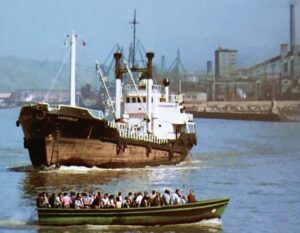 Botadura de costado del buque “José Luis Colás” en el astillero Tomás Ruiz de Velasco (1974)